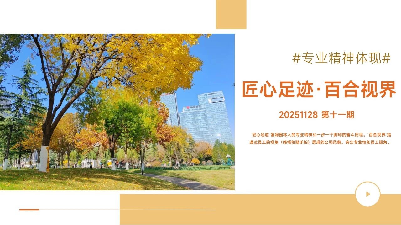 匠心足跡 強(qiáng)調(diào)園林人的專業(yè)精神和一步一個(gè)腳印的奮斗歷程。“百合視界“指通過(guò)員工的視角(感悟和隨手拍)展現(xiàn)的公司風(fēng)貌。突出專業(yè)性和員工視角。