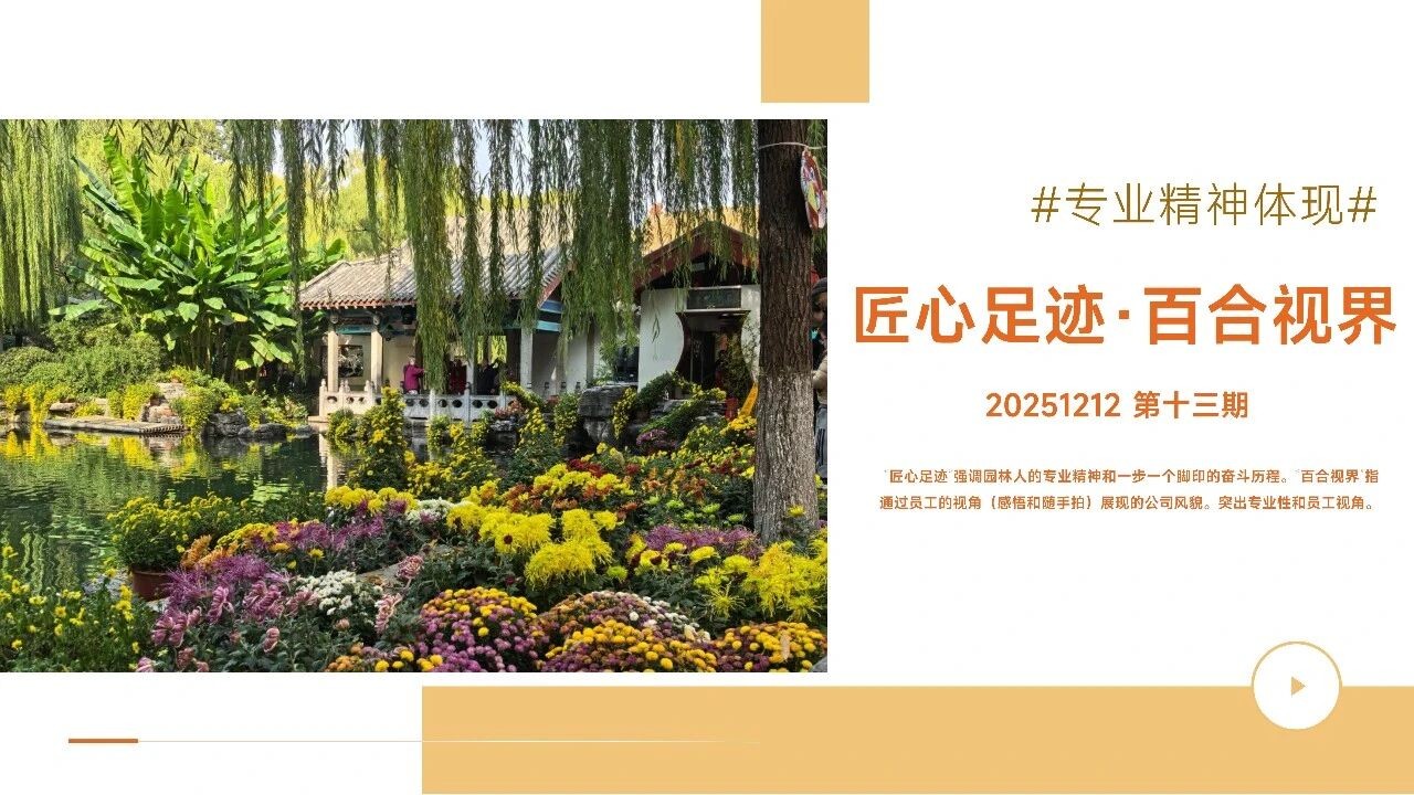 匠心足跡 強調(diào)園林人的專業(yè)精神和一步一個腳印的奮斗歷程。“百合視界“指通過員工的視角(感悟和隨手拍)展現(xiàn)的公司風(fēng)貌。突出專業(yè)性和員工視角。