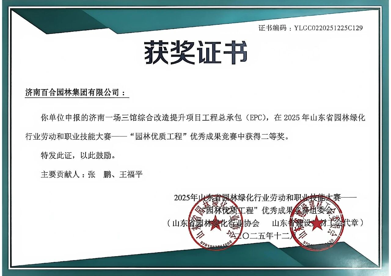 【喜報(bào)】百合園林榮獲2025年山東省園林綠化行業(yè)職業(yè)技能大賽多項(xiàng)殊榮
