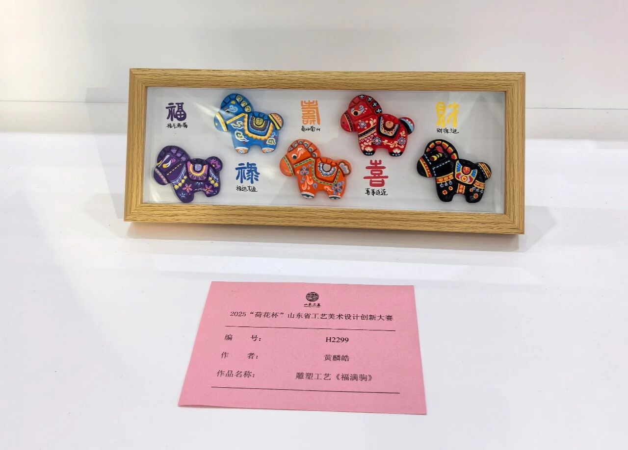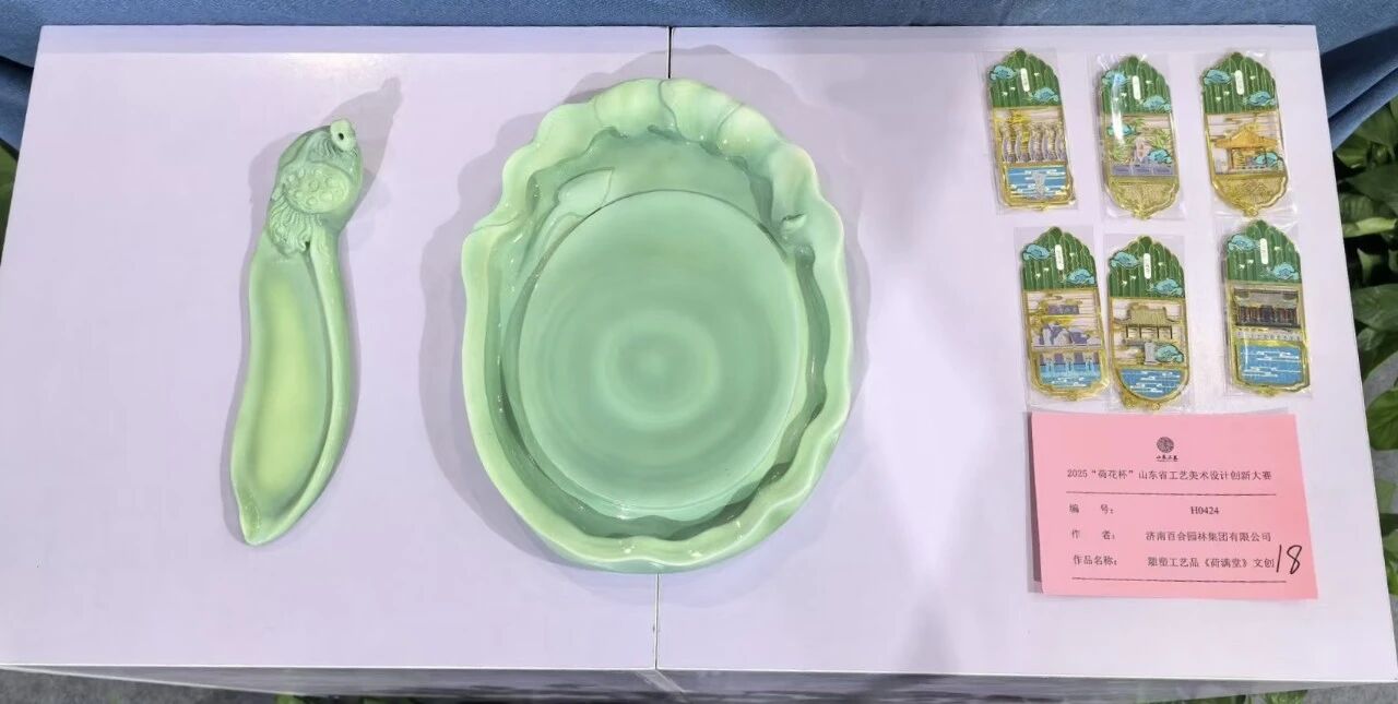 集團(tuán)自主研發(fā)創(chuàng)作的 《荷滿堂》系列陶瓷工藝品 ,成為本屆展會的焦點(diǎn)之作。作品以 “荷” 為核心元素,將傳統(tǒng)陶瓷工藝與現(xiàn)代設(shè)計理念巧妙融合,釉色溫潤如玉,紋飾靈動雅致,既傳承了中式美學(xué)的古典意蘊(yùn),又融入了當(dāng)代生活的審美需求,憑借精湛絕倫的制作工藝與獨(dú)具巧思的創(chuàng)意表達(dá),成功斬獲 “荷花杯” 山東省工藝美術(shù)設(shè)計創(chuàng)新大賽金獎,用作品實(shí)力印證 “山東手造” 的匠心傳承。