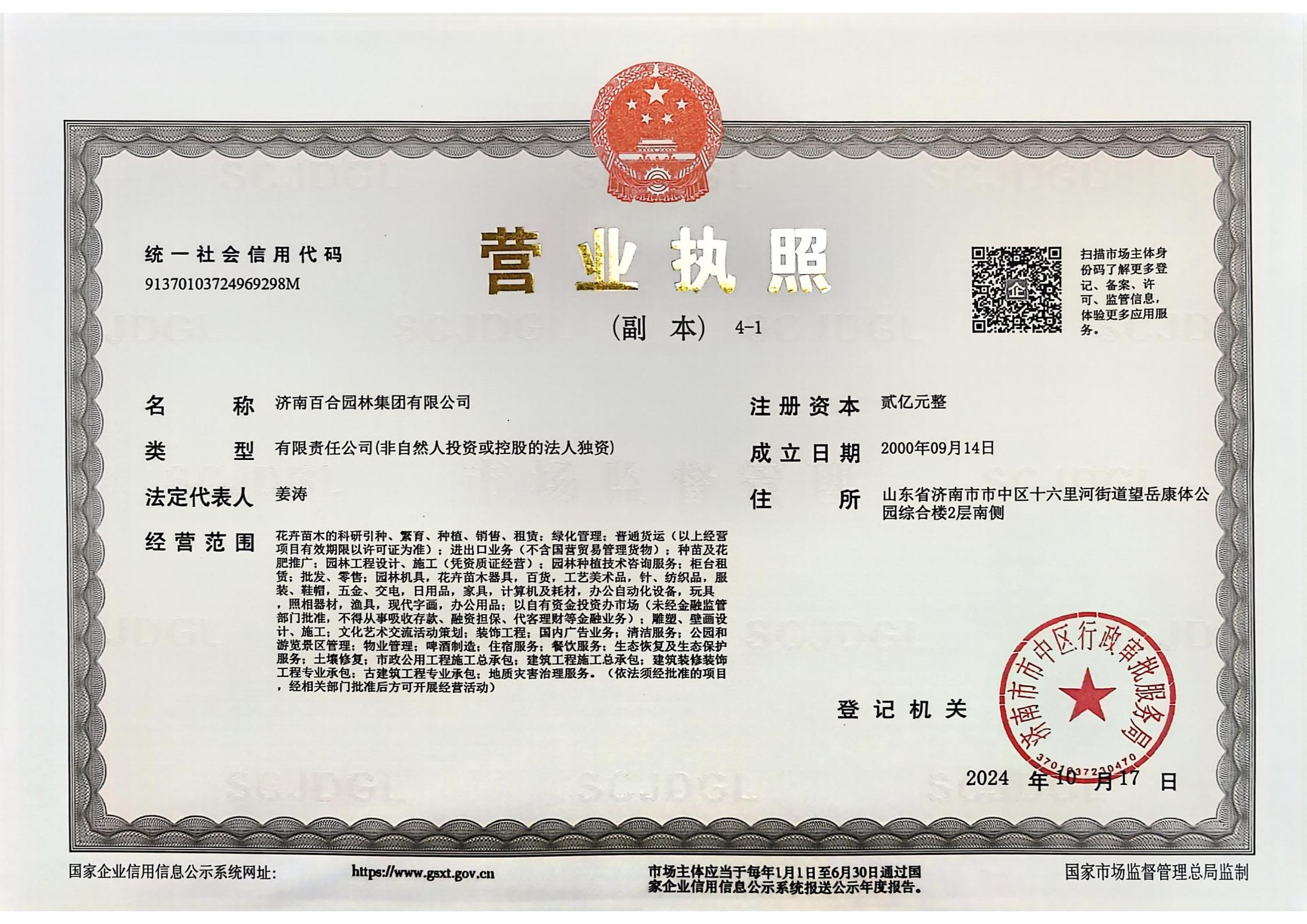 濟南百合園林集團成立于2000年,注冊資本金2億元,隸屬于濟南文旅發(fā)展集團有限公司,集園林工程設計、施工、養(yǎng)護管理,以及花卉苗木生產(chǎn)銷售、市場租賃于一體的大型綜合性企業(yè),集團下設綜合管理部、設計院、市場開發(fā)部等八個部門,投資成立百合園林工程公司、百合綠潔公司、花卉市場分公司等,始終堅持“客戶至上,誠實守信”的經(jīng)營理念,受到各級領導和社會各界的認可和好評。