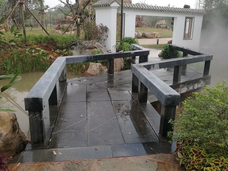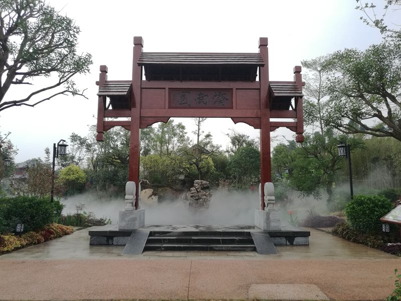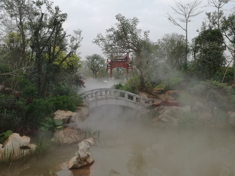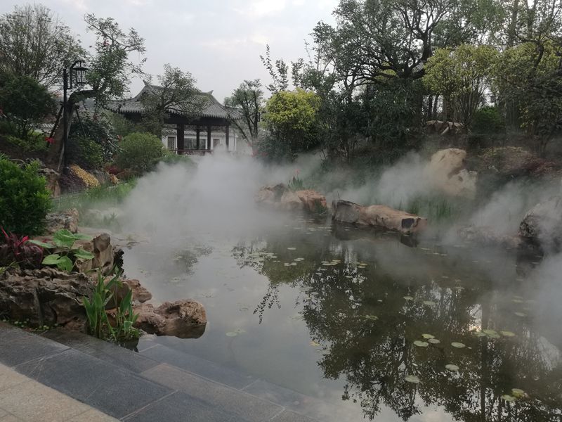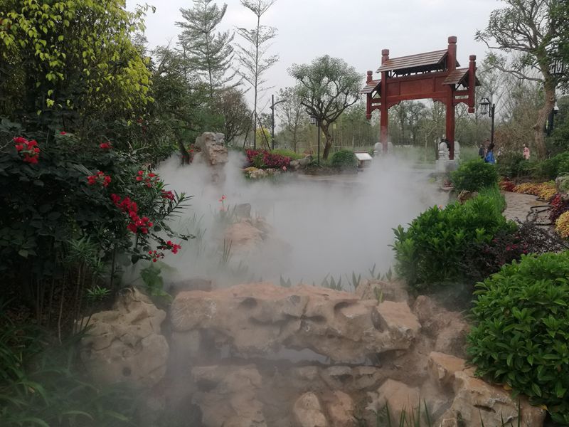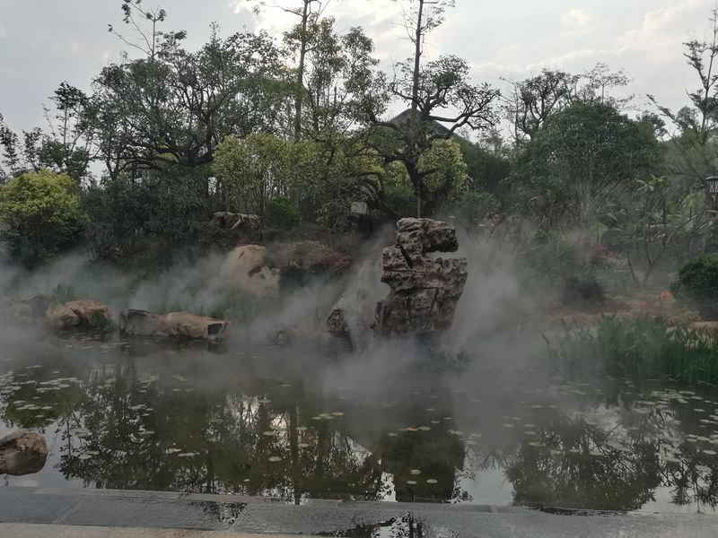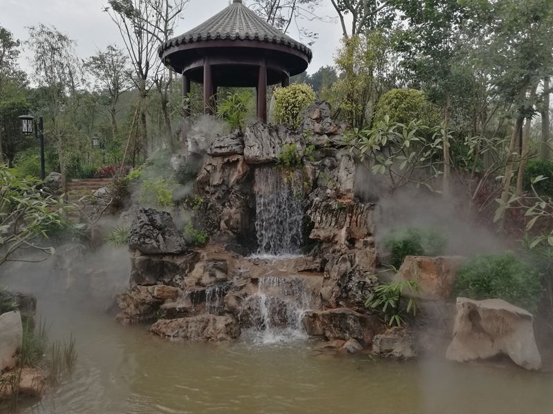 濟南園的主題是“山水園林”,整個園區(qū)用山石、疊水和霧森將“鵲華煙雨”表達地淋漓盡致。