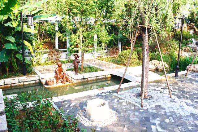 關(guān)于百姓生活的展示方面,主要以街巷與民居的形式,通過提取具有濟(jì)南印象的水街、院落布局等,展示在泉水影響下的濟(jì)南百姓生活特點(diǎn),如汲水、泉水洗衣、老虎灶泉水煮茶、以及走街串巷售賣的生活場景,通過老物件、老照片、室內(nèi)展示、聲音等形式在園中展示,同時提取了濟(jì)南老城巷的建筑元素、老城色彩、代表植物,運(yùn)用傳統(tǒng)造園手法,通過墻與巷的布局特點(diǎn)予以展示。