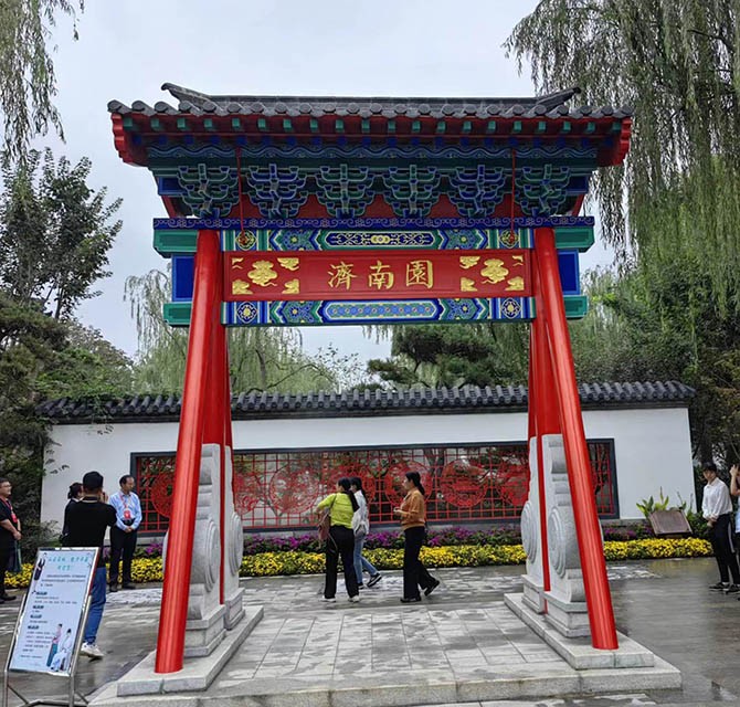濟(jì)南園位于合肥國際園博園室外展園A3地塊,占地約2600平方米,以“山水泉城,魅力濟(jì)南”為主題,總體布局以濟(jì)南傳統(tǒng)院落為基底,融合山水城市格局,結(jié)合人文歷史、風(fēng)土人情,從畫境、生境、意境三個層次,展現(xiàn)濟(jì)南“山、泉、湖、河、城”渾然一體的獨(dú)特魅力。2022年10月開工建設(shè),2023年5月竣工,在38個參展城市展園中率先建成。