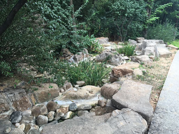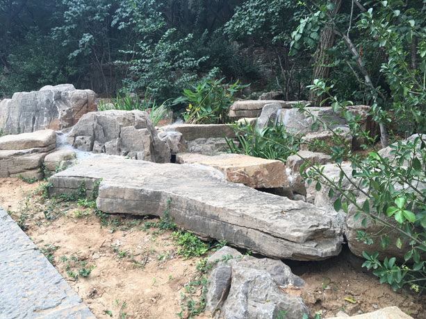 設計理念: 本項目建設地點位于佛慧山景區(qū)內(nèi)開元遺韻坊至開元文化園游覽道路及兩側。工程施工過程中,根據(jù)現(xiàn)場實際情況,因地制宜,在河道內(nèi)砌壘攔蓄擋墻、蓄水池,通過設置魚鱗穴、擋墻等進行苗木栽植,達到山體滲水、蓄水、滯水的目的,從而積極響應建設節(jié)約型園林、海綿城市等的要求。