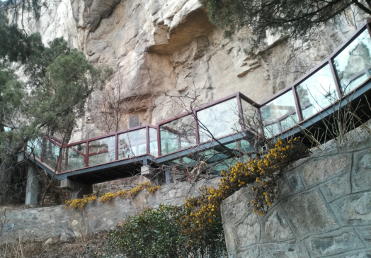 根據(jù)黃石崖遺址周邊的實際情況,項目采用了新建木棧道的方法對周邊道路系統(tǒng)進行改造提升,在滿足與周邊景觀融合統(tǒng)一的同時,能夠更好地保護黃石崖周邊的原有植被等景觀。