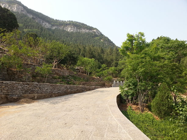工程在施工過程中,堅持“以人為本,因地制宜”,根據(jù)施工現(xiàn)場情況,新建冰紋石臺階路及糠糧砂鋪地等,力爭為游客提供一個自然、健康的游覽、健身環(huán)境。同時,注重安全措施的設(shè)置,安裝塑木欄桿等設(shè)施。根據(jù)山體的自然條件,項目采取砌筑景觀擋墻及水平階的方式,對裸露山體進行綠化改造,增大土壤的滲透率。在進行綠化樹種選擇時,堅持適地適樹,選用適應(yīng)性強、抗貧瘠及干旱能力強的鄉(xiāng)土樹種,并適當增加常綠樹種,在突出植物多樣性的同時,提高山體的四季景觀效果。