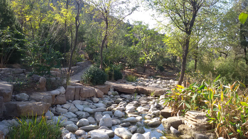 項(xiàng)目新建旱溪、導(dǎo)水槽等,增加了雨水的收集及滲透量,起到“滯、吸、凈、蓄”的作用,需要時還可將蓄存的水“釋放”出來、加以利用,同時也增加了景區(qū)自然生態(tài)的景觀效果。