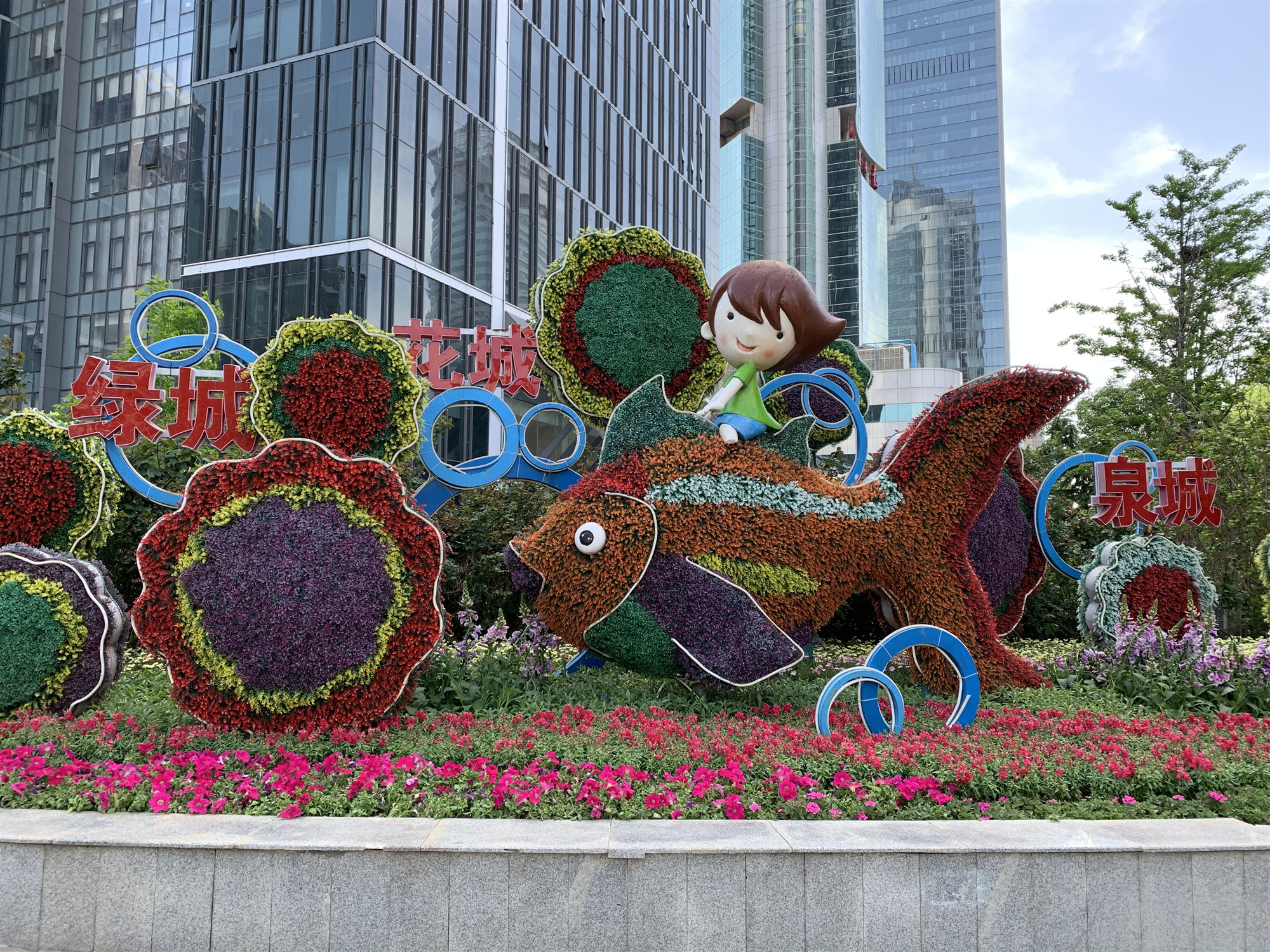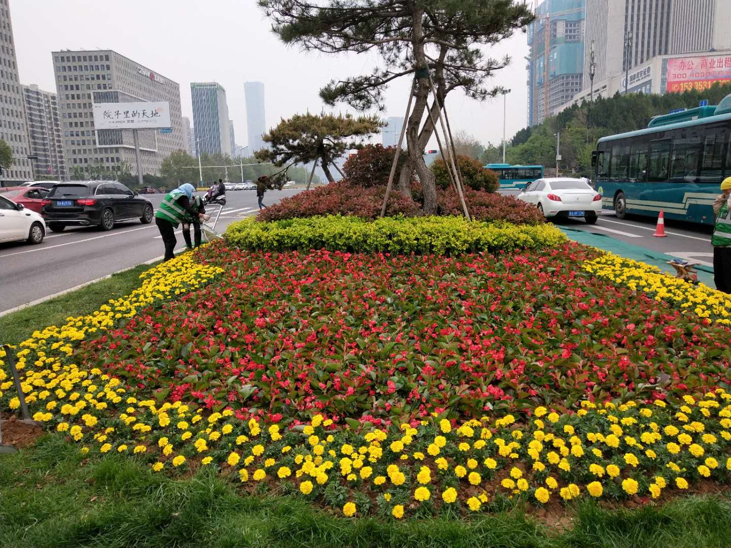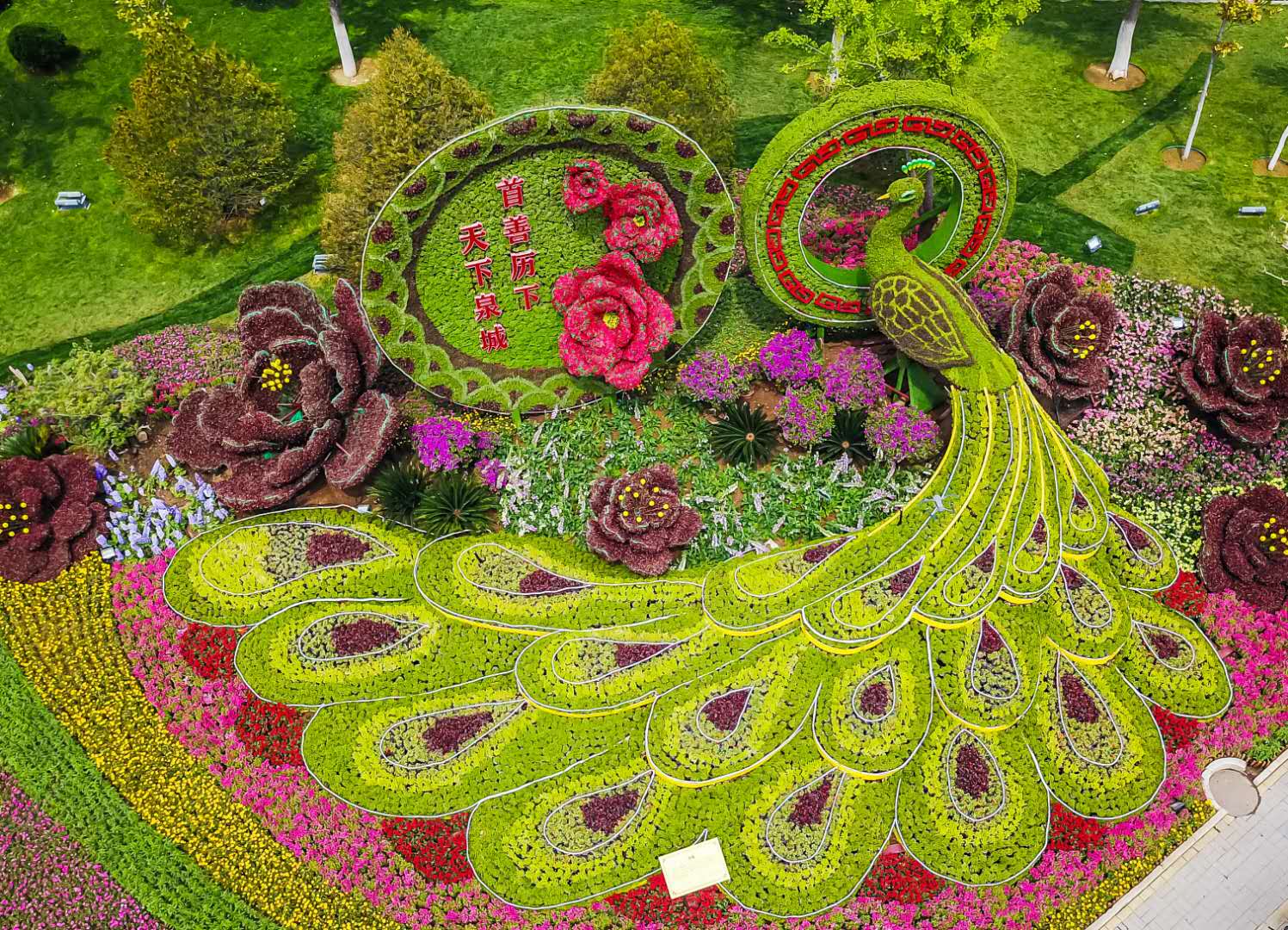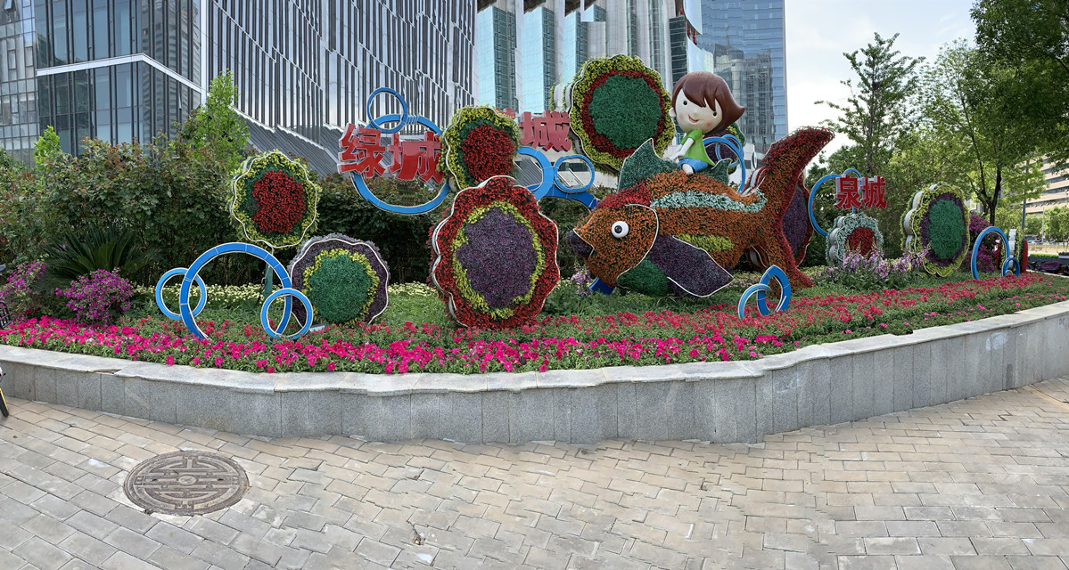 百合園林集團承接的歷下區(qū)二環(huán)內(nèi)的四組立體造型布置工作,這四組造型分別位于泉城公園東南門的“祝福”造型、玉函路經(jīng)十路東南角“舜耕歷下”造型、濼源大街歷山路西南角的“五彩生活”造型、歷黃路經(jīng)一路東北角的“泉城荷韻”造型以及經(jīng)十路16處地栽花卉節(jié)點,項目總占地3000余平方米,人工整理綠化用地930余平方米,共使用大花海棠、孔雀草等時令花卉50萬株。施工過程中,百合園藝師們按照“多樣性、藝術(shù)性、經(jīng)濟性”的原則,在保留原有傳統(tǒng)景點布局的基礎(chǔ)上,對主題元素、植物選擇、色彩搭配等方面各有創(chuàng)新。